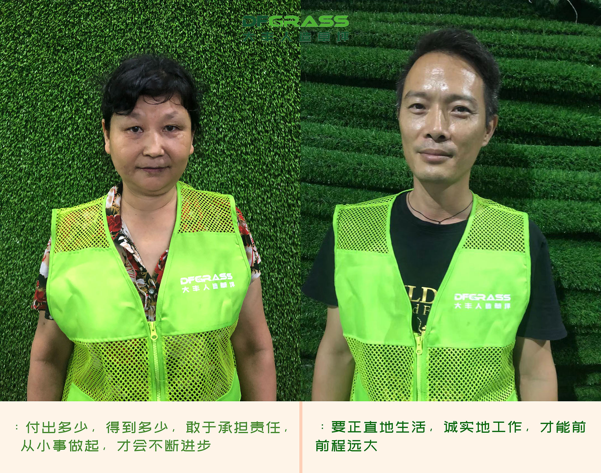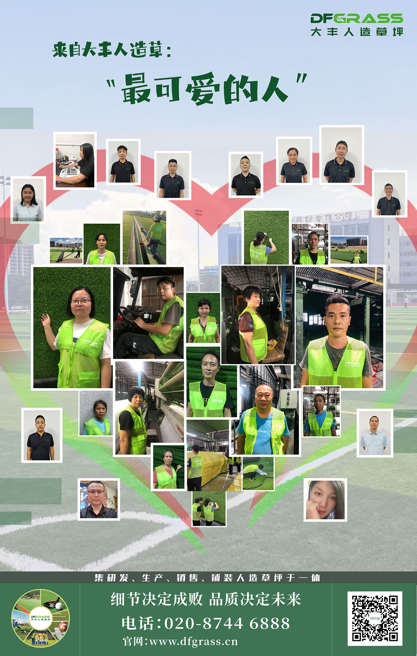 大丰人造草全体员工认真把握工作每一个细节,即使是*普通的事,也要全力以赴尽职尽责的完成,他们就是“*可爱的人”
