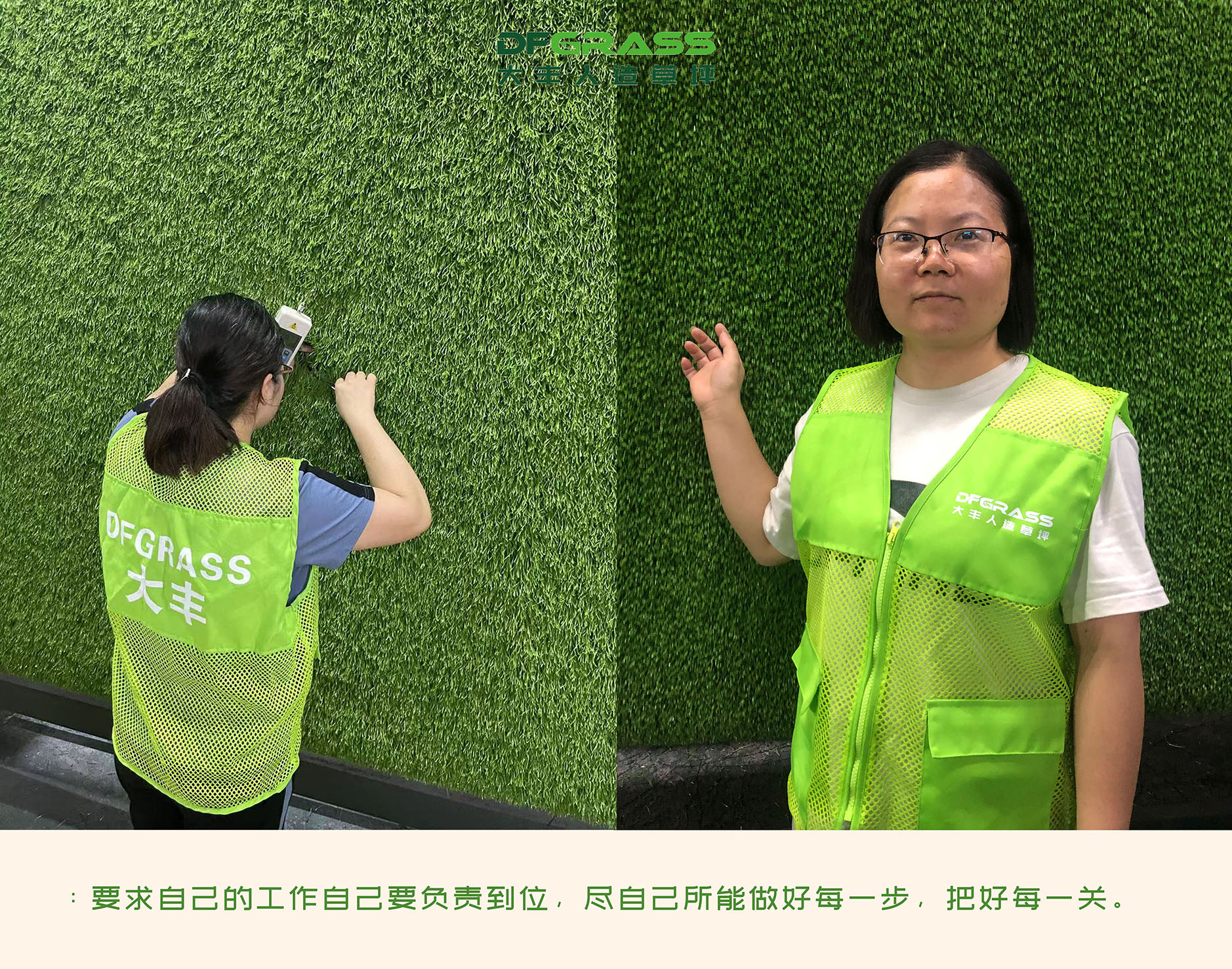 “保剑锋从磨砺出,梅花香自苦寒来”,把握工作细节,追求产品品质是大丰人造草全体的共同目标。