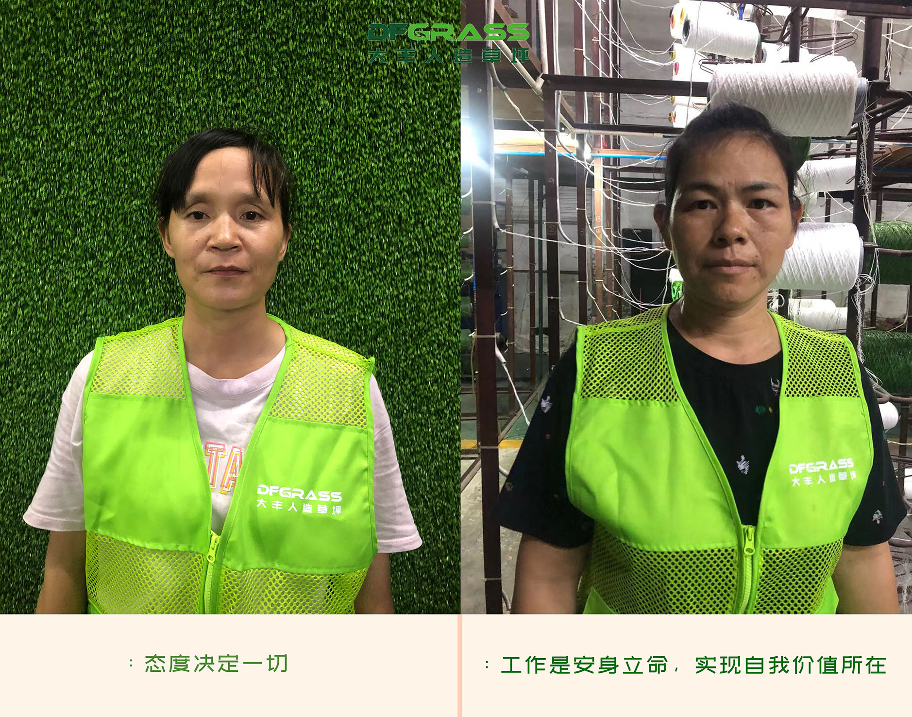 立足今日,一个公司能够成功的关键性因素在于基层工作的效率和质量。在工作面前,工作态度决定一切,大丰人造草的全体员工认真负责,踏实苦干的工作态度成为公司能够不断发展壮大的一大源泉。